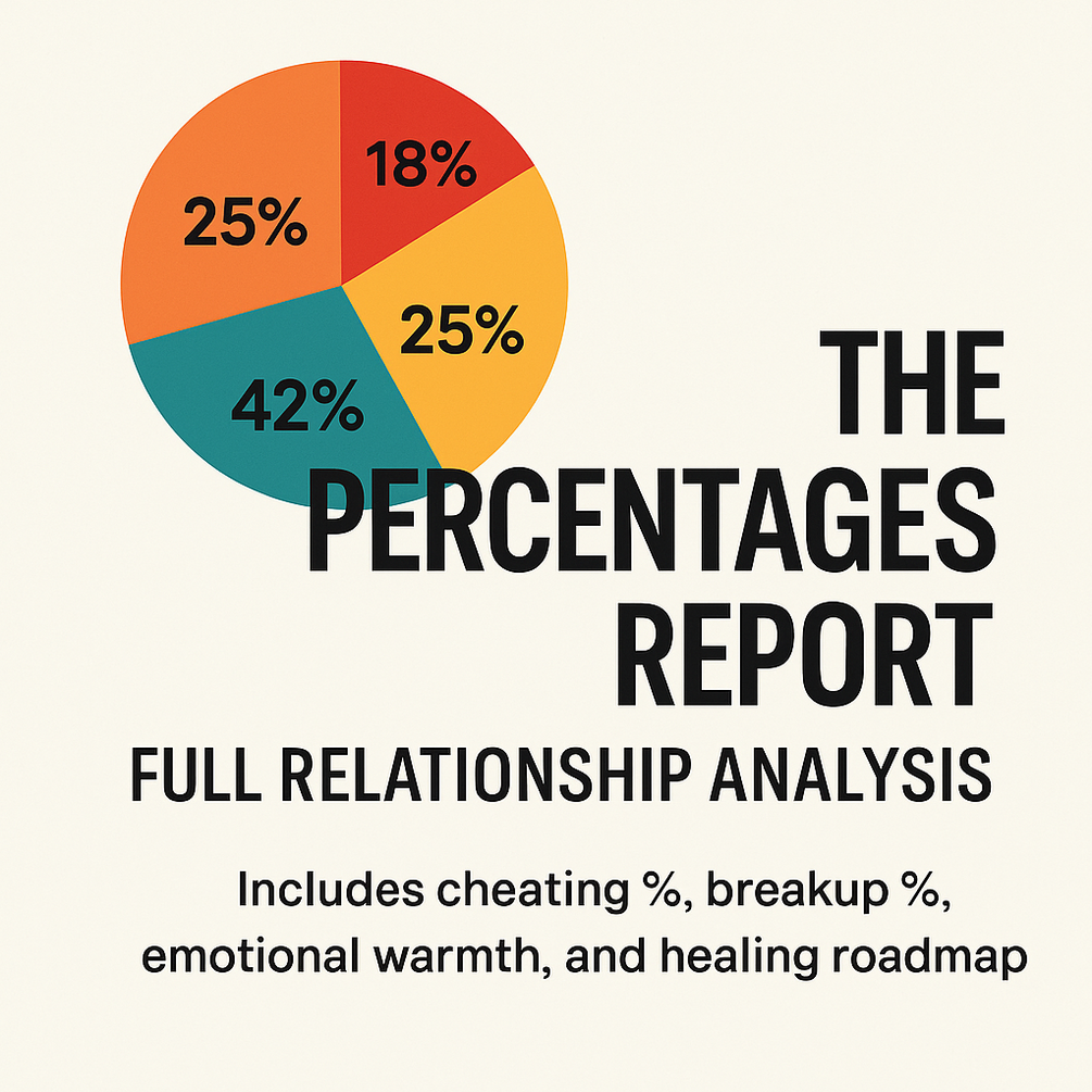 Includes cheating %, breakup %, emotional warmth, and healing roadmap